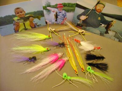 Ifyou've never done battle with a smallmouth bass using a flyrod then you really need to try it. I think if you do you will be hooked for life(no pun intended!), if you have then you know what i'm talking about. I have spent a lot of time chasing smallies with flies and I never seem to tire of it, its fun, plain and simple. Here is a selection of some of my favorite patterns for fooling these wonderful fish. Some are of my own design, some are well known patterns that I have been using for many years. These flies will also work wonders on pickeral, pike and largemouth. This selection consists of two flies each of the same size, a total of16 flies.