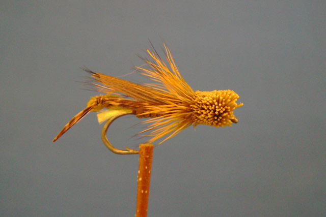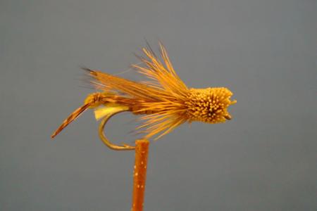 Size #8. Very realistic pattern, floats low in the water. Can be very effective along stream banks with a lot of grass and low vegitation. The Deer Hair Hopper is a good choice from mid summer through early fall. Try letting this fly dead drift through a likely spot, give it just a little twitch or two but don't over do it. Keep it as natural a presentation as possible.