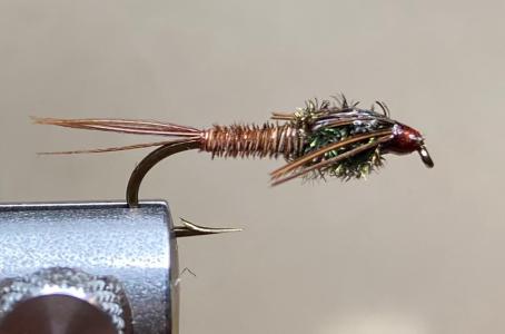 This version of the classic Pheasant Tail nymph features two of the best fly making materials. Pheasant tail strands and peacock herl. This simple pattern has accounted for a lot of trout for a lot of anglers all over the country and beyond. This is offered in sizes 16, 14, and 12