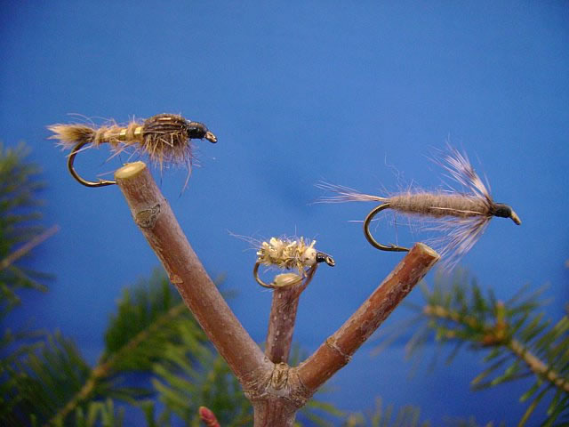 From the smallest mayflies, to caddis flies, to the big flies such as stone flies, aquatic insects spend a large portion of their lives under the surface. Although there are several stages they go through before emerging into adults on the surface, these can generally be termed as nymphs. We can imitate a lot of different insects with just a few patterns if we cover the whole color spectrum in a few sizes. Most of the patterns you will find here are not specific imitations, but are nymphs that can "suggest" a number of different insects.